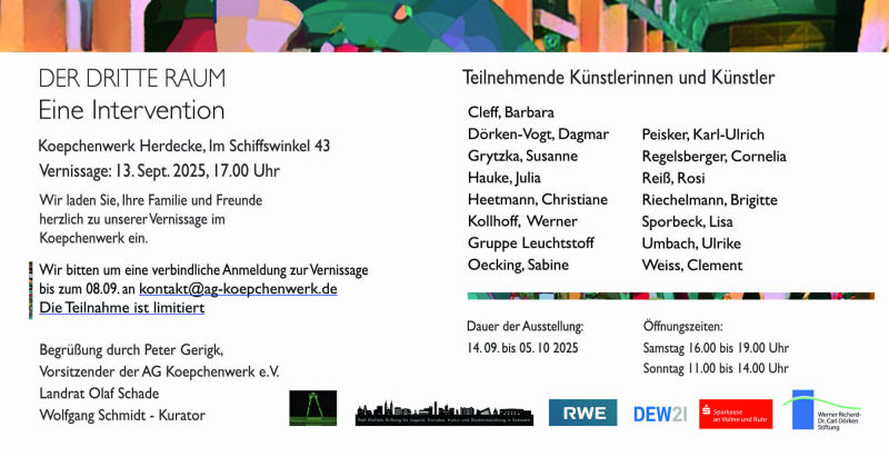 Zu vielen Veranstaltungen für unseren Kunstraum EN e.V. entwerfe ich Plakate, Einladungskarten, Banner, Kataloge und auch Bücher. Die Plakate wurden in DIN A3, DIN A1 und bis 1 x 6 m und 3 x 6 m gedruckt.